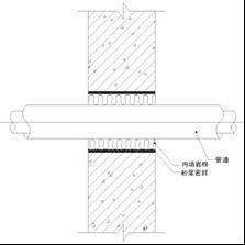 吊頂空間的穿墻管道密封處理;構(gòu)造:內(nèi)填巖棉+砂漿密封,其中砂漿的厚度不小于20mm,巖棉的容重為60K/M3,砂漿的厚度主要是隔聲作用,巖棉主要解決有管道振動(dòng)而產(chǎn)生的低頻振動(dòng)傳聲。