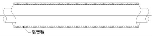 在管道上敷設(shè)隔聲、消聲和減振材料。管道鐵皮較薄,應(yīng)進(jìn)行隔聲包扎。構(gòu)造:風(fēng)管+20mm密胺吸聲綿+2層隔音氈+20mm密胺吸聲綿+2層隔音氈,管道的包扎就是為了解決管道本身由于振動(dòng)所產(chǎn)生的噪聲及振動(dòng)對(duì)所有穿墻部位的影響,見圖所示。